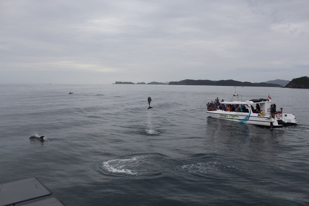 After watching the Dolphins for a while before they left us to go and chase the Navy ships. They were heading to Waitangi for the Waitangi Day Celebrations. We headed out to the Hole in the Rock.