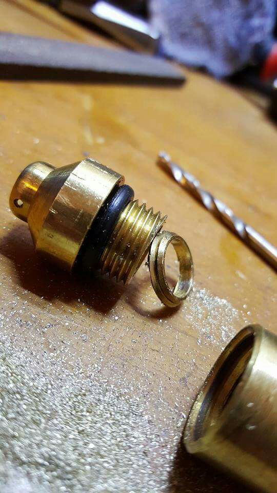From there the 2250 has been dismantled, the valve disassembled and the gas port ground out to remove the elbow to allow a smoother transition of gas. The valve cap has had a few threads removed to allow more gas into the valve.